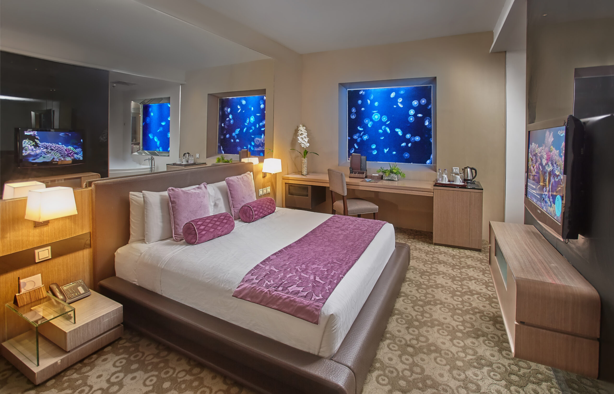Our signature room that showcases a life-sized aquarium featuring the calm and mesmerizing beauty of the marine world, runs the length and breadth of the 25 square-metre room's main wall.