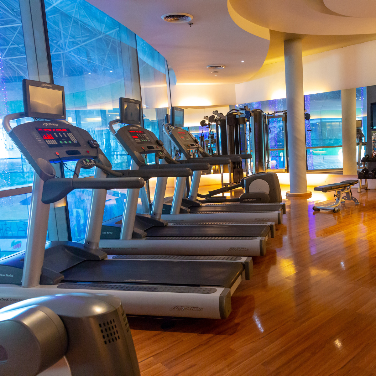 The fitness center allows the guests to stay fit during their stay at Hotel H2O. Guests can use the gym equipment with the assistance of our in-house trainer.